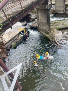 お魚探しをしたり、岩場から飛び込んだり・・・各々で川遊びを満喫しました。