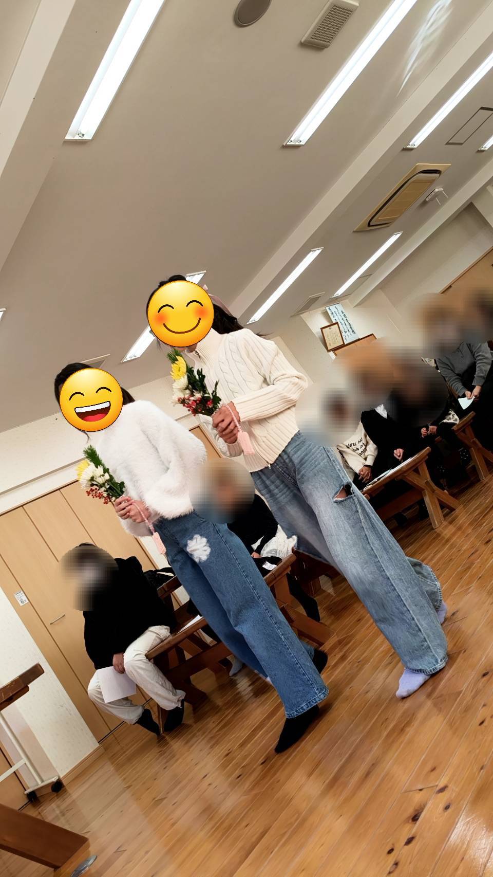 園長による新年の挨拶後に、お節を食べながら、お年玉をもらったり、ビンゴゲームをしたり・・・