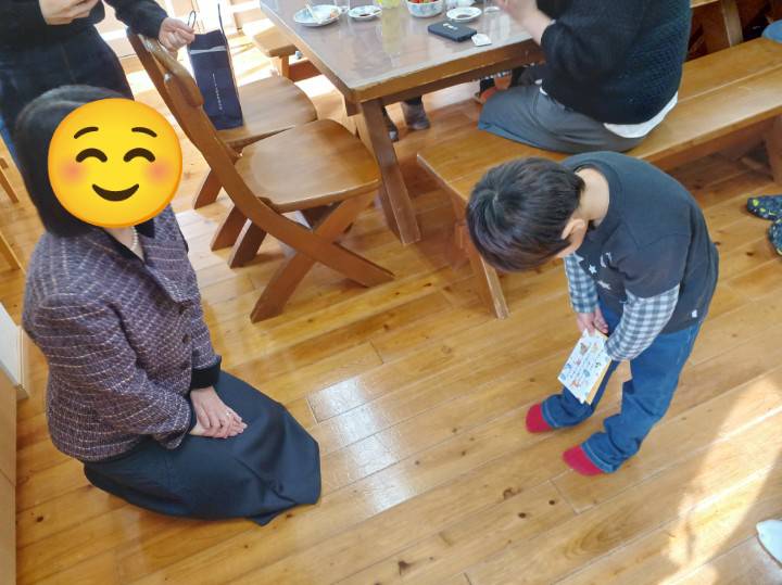 お年玉をもらった際、「ありがとう」の言葉だけでなく、深々と頭を下げてお礼を言う幼児さんもおり、職員だけでなく中高生も、ほっこりとする場面もありました。