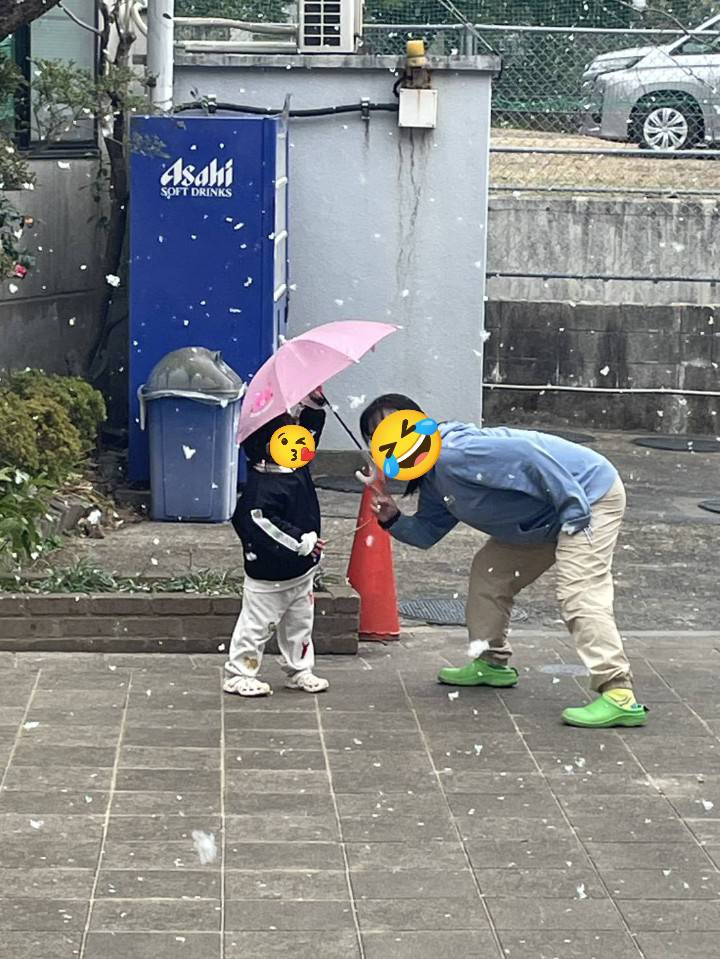 自分の小さな傘に「どーぞ」と入れてくれた幼児さん。