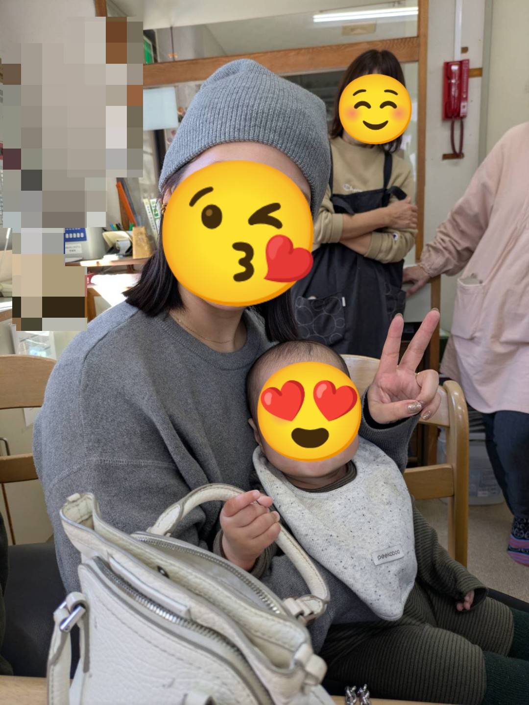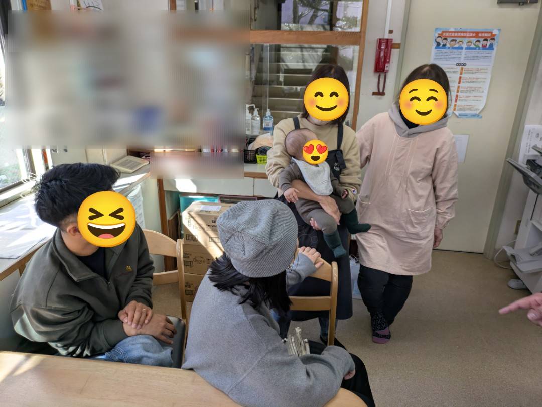 職員は、赤ちゃんを見るとみんな目じりを下げて「はーい、じいちゃんにおいで」「今後は、ばーちゃんにおいで」と冗談交じりの会話をしながら赤ちゃんを抱っこさせてもらいます。
